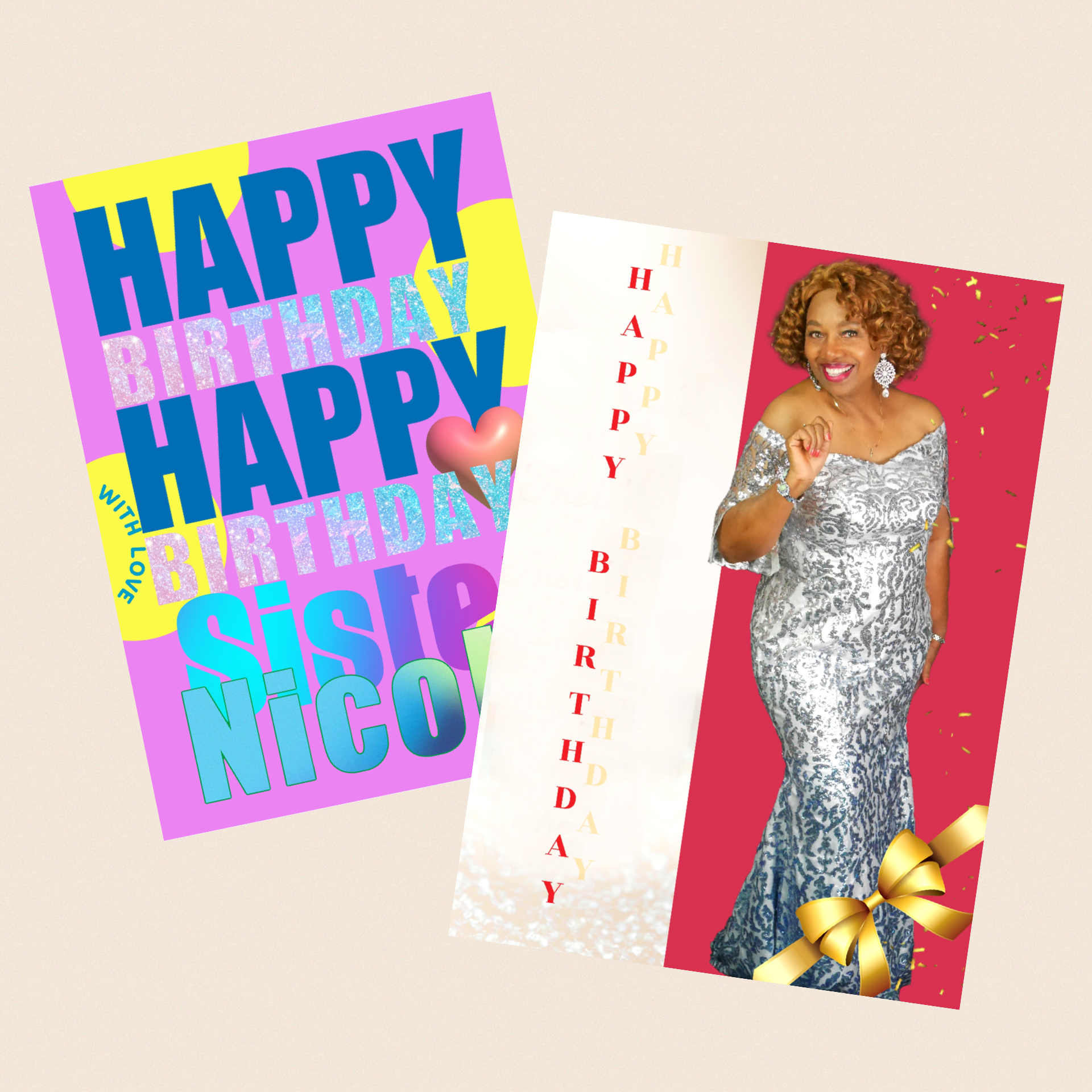 - Customised, medium, A5 Happy Birthday photo-card. Blank inside.